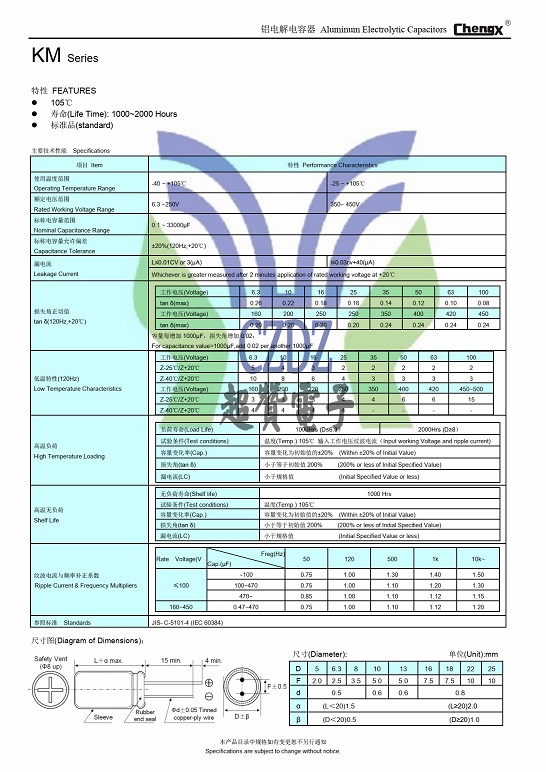 標(biāo)準(zhǔn)品KM系列ChengX承興鋁電解電容